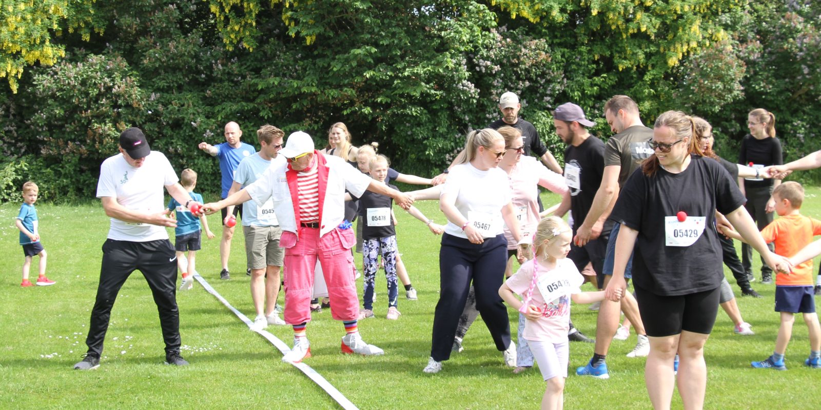 Klovneløbet er et familieløb, hvor alle der kan kravle, gå, rulle eller løbe, kan være med. Det handler ikke om at være hurtigst — det handler om at få en hyggelig og sjov dag, og samtidig støtte et godt formål.